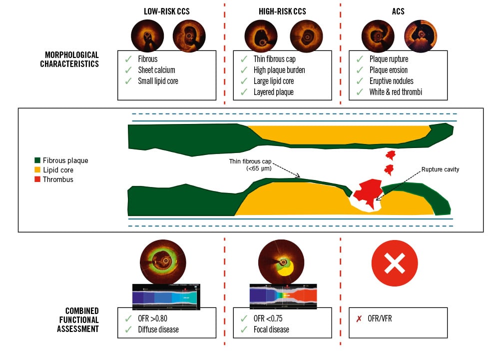 Figure 1. Morphofunctional lesion stratification with AI-enabled intracoronary imaging. ACS: acute coronary syndrome; AI: artificial intelligence; CCS: chronic coronary syndrome; OFR: optical coherence tomography-based fractional flow reserve; VFR: virtual flow reserve
